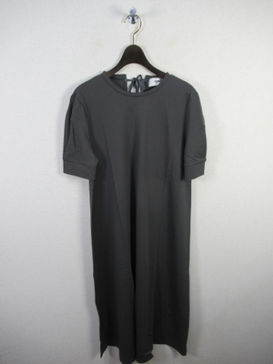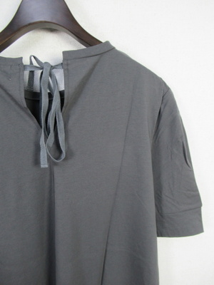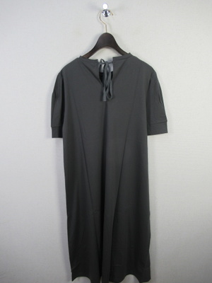 カットソー地のロングワンピース 袖はカフスでタック入り 後ろ首のところにりぼん結び 手洗い可能