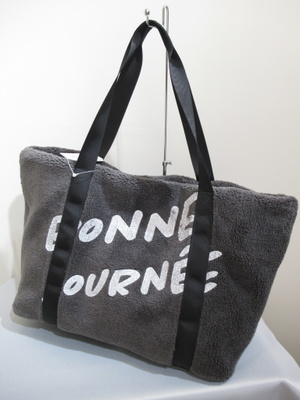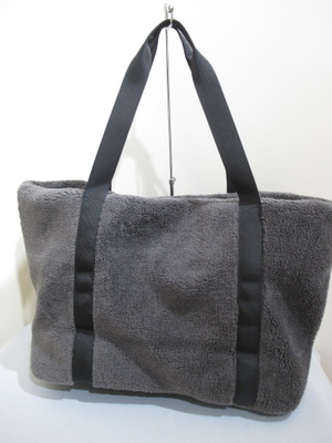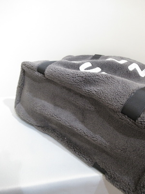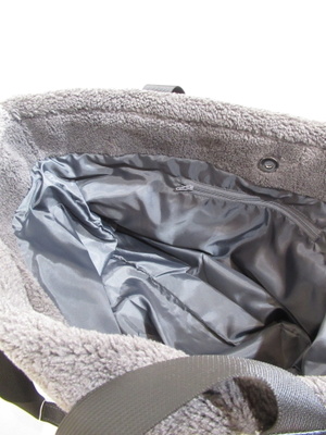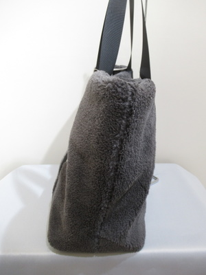 フェイクファーのトートバッグ グログランテープの持ち手 中央にマグネットで留める 内ポケット有り ロゴ・イラスト