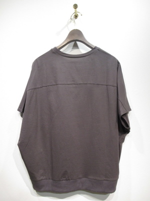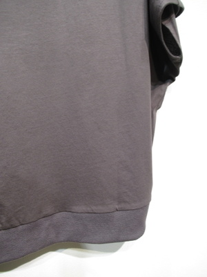 身頃からそのまま袖のざっくりしたデザイン 裾は前後差有り 裾後ろはリブ フロントシルバーのロゴ 手洗い可能