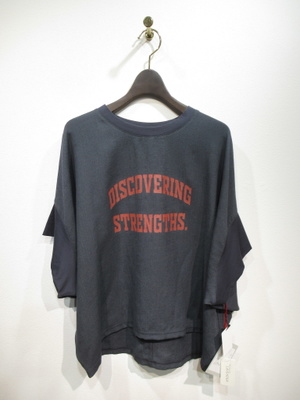 ドルマン袖 襟ぐりと袖口カットソー生地 裾は前後差有り フロントロゴ入り