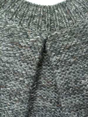 ややゆるめのニットなのでインナーに長袖カットソーを重ねても可愛い。ラメ糸が控えめにキラキラします。