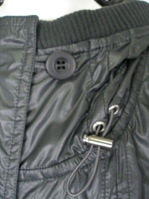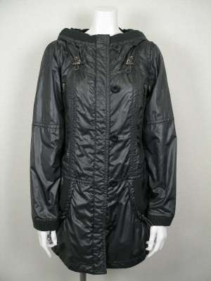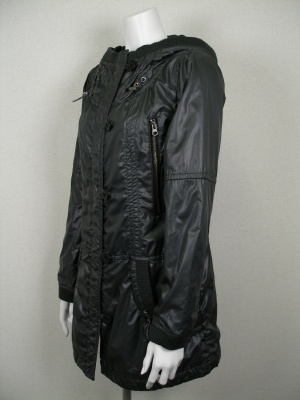 光沢のある素材のカジュアルなコート。裏地は肌触りの良いポリエステル/綿で、中綿は入っていません。