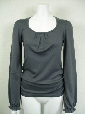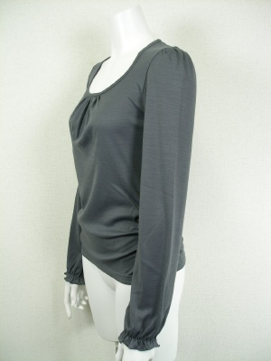 胸元と裾の両脇にギャザー。袖口と脇のギャザーは裏側にゴムを付けています。