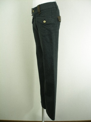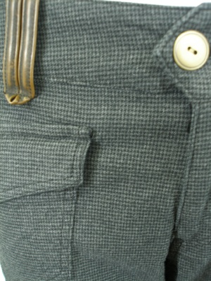 ライトグレーとチャコールグレーは細かい千鳥格子柄で、ミディアムグレーはグレンチェックです。ベルトループとポケットに合皮を使用。