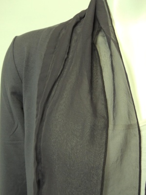 襟から裾まで2枚合わせのシフォンを使用。