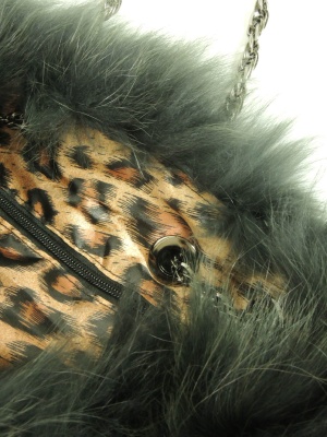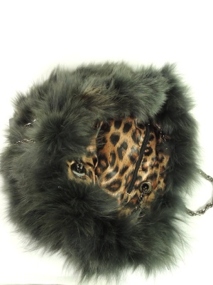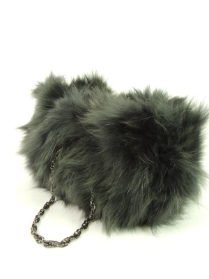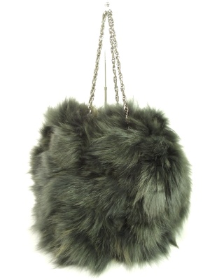 チェーンを通しているので、手に持つと巾着のようになり丸いフォルムに。