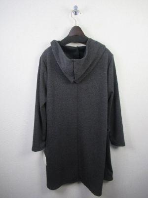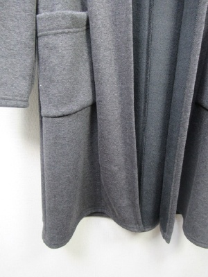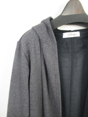 ダブルフェイス生地 着流しタイプでポケット有り フード襟 ミディアムグレーは白 チャコールと黒は裏の色は同じ黒