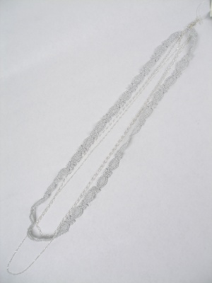 ラメ入りレースと華奢なチェーンのネックレス。