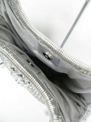 アクセサリー感覚で持ちたい、キラキラした小さめバッグ。荷物を入れるとコロンとしたシルエットになります。サイズの「高さ」はハンドルを含みます。