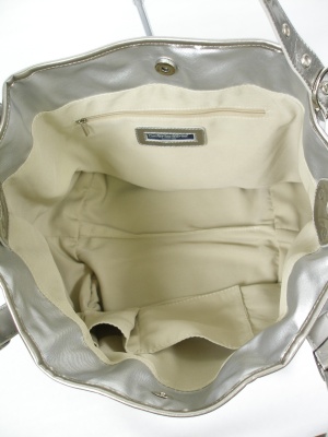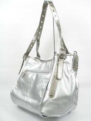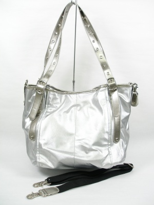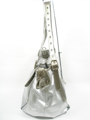 シャイニーなショルダーバッグ。ストラップは短くもできます。斜め掛け用のストラップ付き。