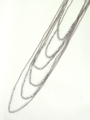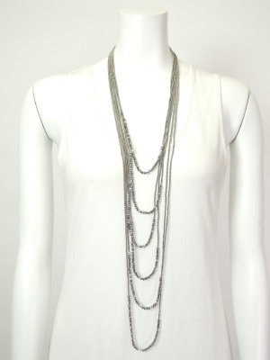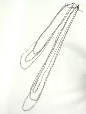 長さの違う3連ネックレスの2個セットで、合わせて使うと6連になります。