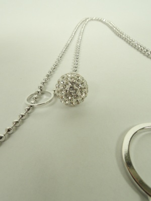 小さい輪の中に長いチェーンが通って津Y字ネックレス