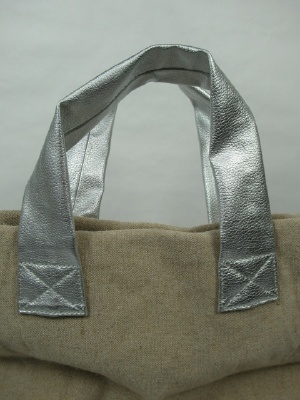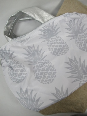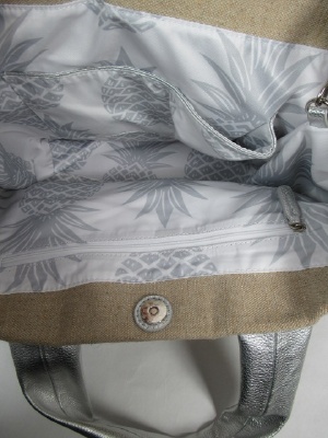 持ち手が牛革、中にパイナップル柄のインバッグ付き(取り外し可能)