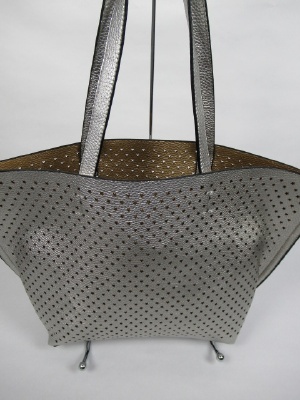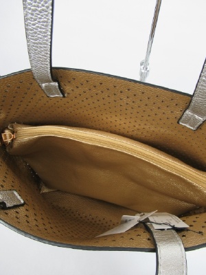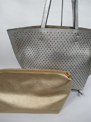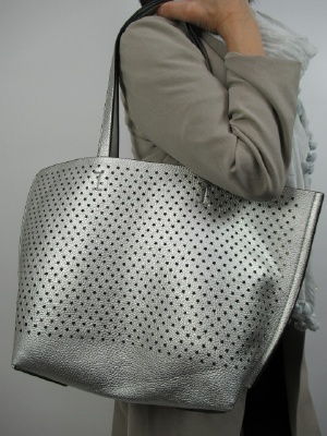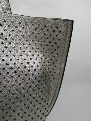 星の形のパンチング、インバッグがシルバーのみゴールド(バッグの裏側も)、白とピンクは薄いグレーです、2WAYにもできます