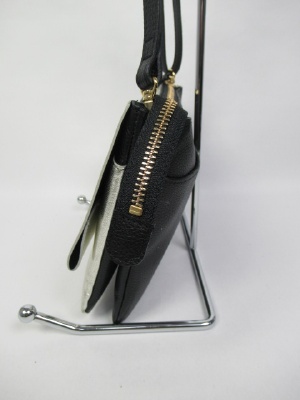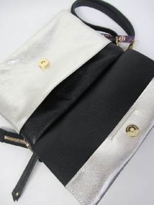 クラッチバッグ、ポケットが天ファスナー、シルバー部分から開け閉め可能、ショルダーにもなります