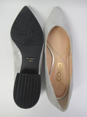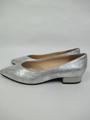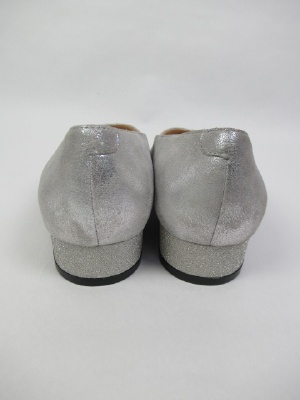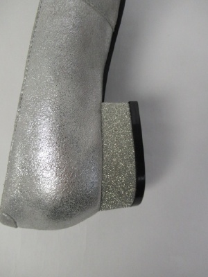 シルバー・ベージュともに革スエード、ヒール部分はシルバーじはシルバーのラメ、ベージュは黒系のラメ