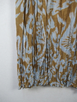 シワ加工生地のプリーツギャザースカート ウエスト総ゴム入り 裏地あり(表地より 約30cm弱短め)手洗い可能 色表示は柄の色を主体にしてます 配色の組み合わせは次の通り 黄色は薄いライトグレイ、ブルーはキャメル ピンクはカーキ 黒はミディアムグレー