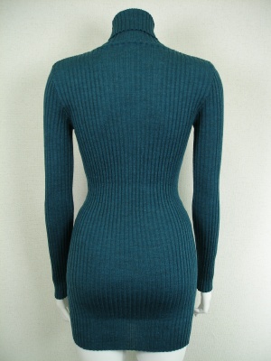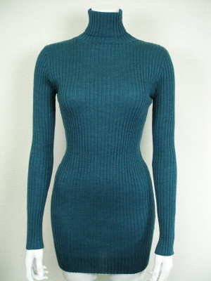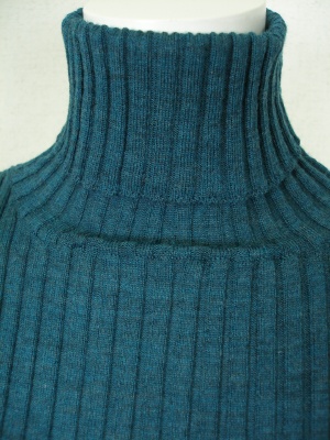ベーシックなリブタートルの着丈を長くしたタイプ。手洗いしても縮みにくく、毛玉ができにくいトリートメント加工を施してあります。