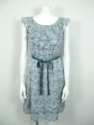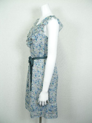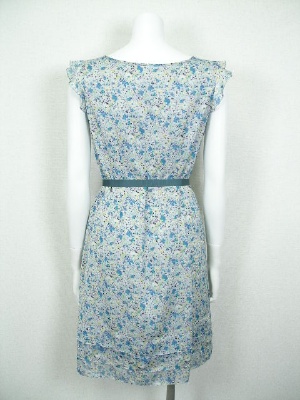 ノスタルジックな小花柄のシフォンワンピース。全体に裏地が付いています。グログランリボンのベルトはお好みで。