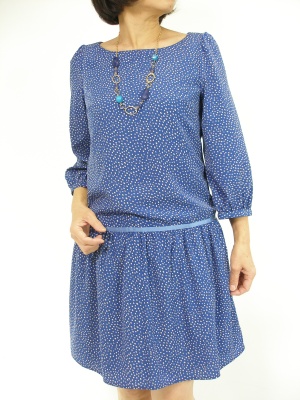 ローウエスト切り替えのフェミニンでノスタルジックなワンピース。