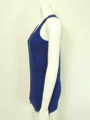 前身頃にレースを重ねたタンクトップ。