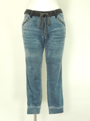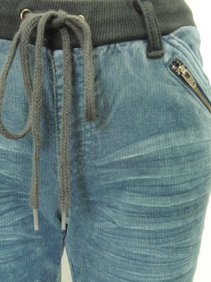 ウエストは平ゴムを入れたリブで紐も通してあります。