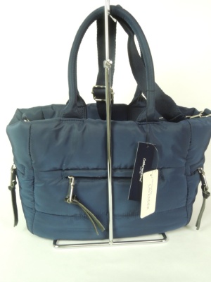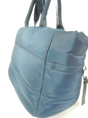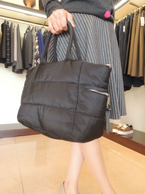 ボンディング生地、天ファスナー 内ポケット有、外ポケット(裏とサイドにファスナーポケット)ショルダーベルト付き