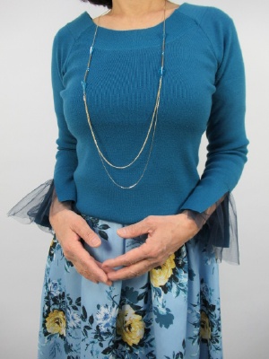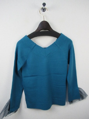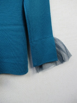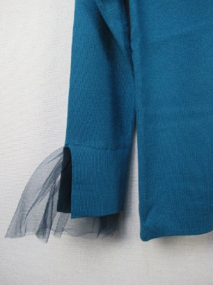 後ろVネック、ラグランスリーブ、袖口に同色のチュール(取り外し不可)