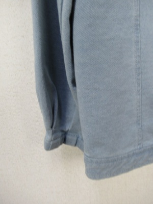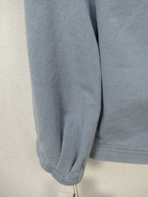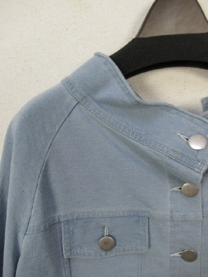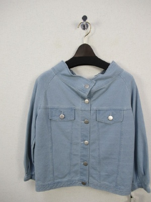 伸縮のあるデニム風スウェット生地、襟が広め、後ろレースアップ、ブルーはリボンがベージュです、ネイビーはリボンがネイビーです