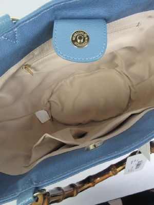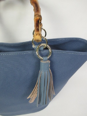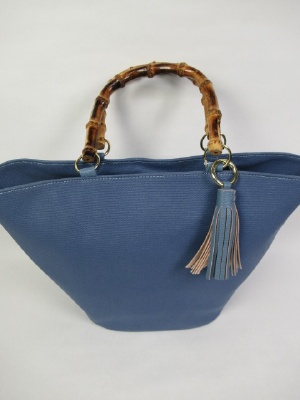 バケツ型 中央にマグネットボタン タッセル付き 内側ポケット有り バンブーの持ち手 タッセル付き