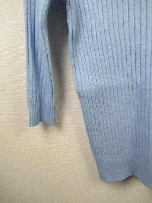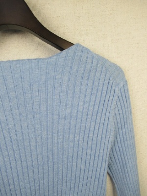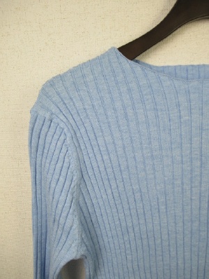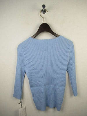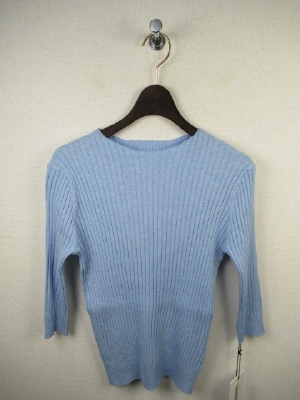 丸首のシンプルリブニット、七分袖、手洗い可能