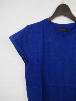 クルーネックの半袖カットソー、袖は折り返しデザイン、手洗い可能、手洗い可能、ID:98836と同じ生地で形違い