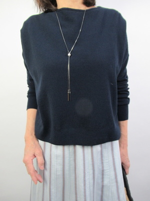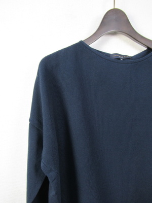 スクエアデザインのニット ドロップショルダー 前身頃だけ鹿の子編み 手洗い可能