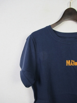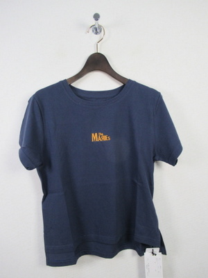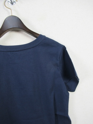 シンプルなカットソー 前後差ありの裾丈 前身頃ロゴ刺繍 白・・白、ミントグリーン・・黒、モカ・・白 ネイビー・・マスタード色 刺繍糸 手洗い可能