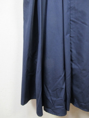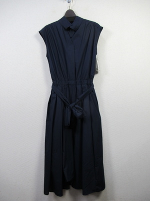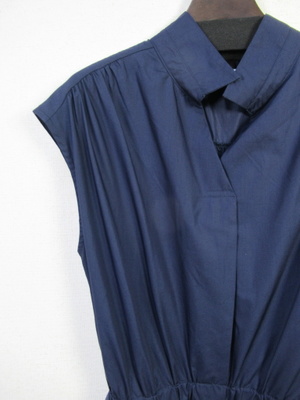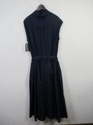 プルオーバーのシャツワンピース 襟はスタンド フレンチ袖 フロントスキッパー襟 ウエスト総ゴムギャザースカート スカート部分は裏地付き 共生地のリボン生地脇ポケット 手洗い可能