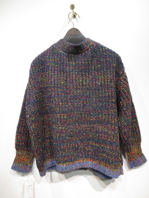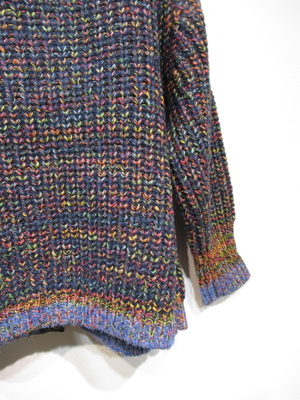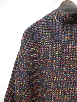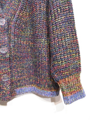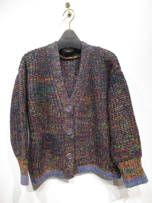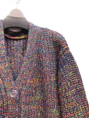 やや太めのミックス糸を使用 畦編みVネックカーデ 袖口と裾は細い糸でリブ 手洗い可能