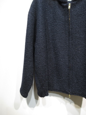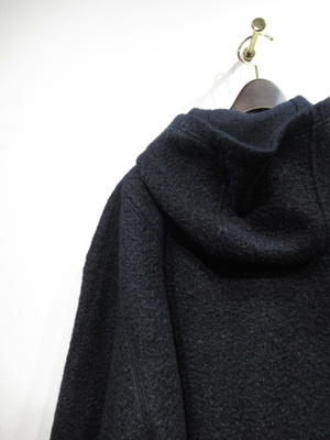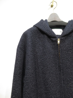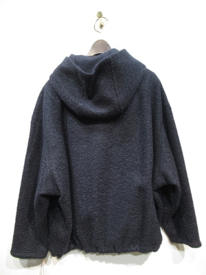 ドロップショルダーのざっくりデザインのブルゾン・コート フード襟 フロントファスナー(ゴールド)裏地無し 裾後ろはゴム入り ポケットあり 手洗い可能