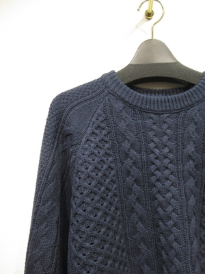 クルーネック 縄編み 手洗い可能