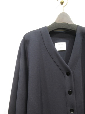 ※春物新作 滑らかでやや光沢感と落ち感のあるポリエステル生地 Vネックでゆったり感のある羽織タイプ 後ろ裾長め 袖カフス 手洗い可能 スカーとパンツの同生地がありセットアップできます