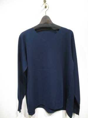 定番のシリーズ Vネックの長袖ニット 裾は前上がり 着用すると裾はややヒップに張り付かない程度の広がり とても着心地がよくさらっとした糸でカットソー代わりに着れるニット 手洗い可能