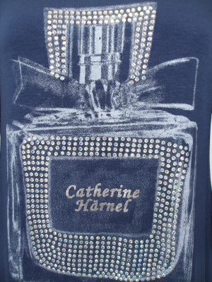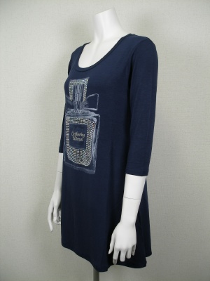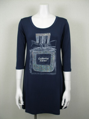 香水瓶のプリントはキラキラのラインストーン付き。生地は柔らかくストレッチが効いています。