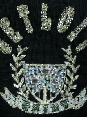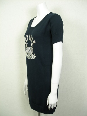 スパンコールのエンブレムがキラキラ可愛いニットワンピ。ストンとタイトなシルエットで広がりません。裏地なし。