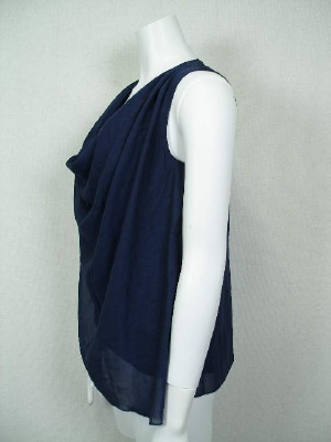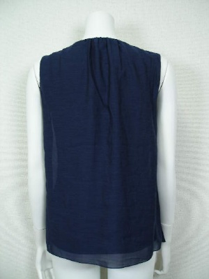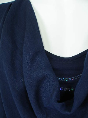 スパンコールをネックレスのように付けたリヨセル70%・綿30%のカットソーに、サラリとしたブラウス生地を重ねています。
