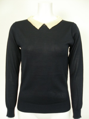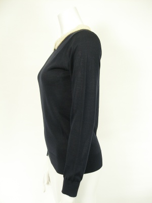 細かいパールの衿はニットにつながってます。