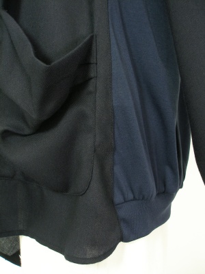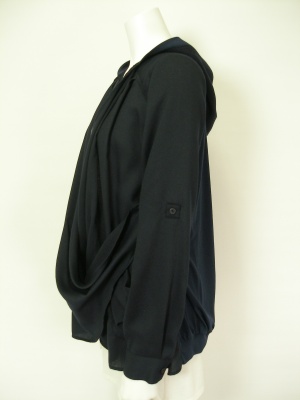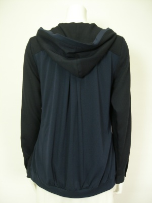 前身頃とフードは布帛、後ろ身頃は薄手のジャージー(レーヨン70%ポリエステル30%)です。