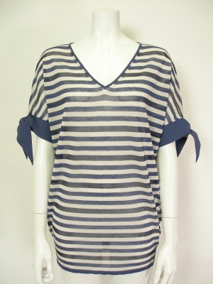 お袖のリボンがポイントのドルマンニット。