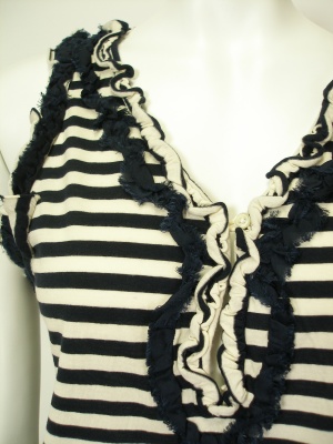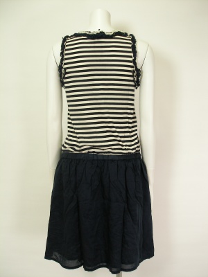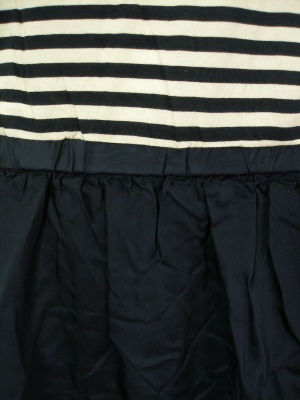 綿のボーダーカットソーとキュプラの無地スカートとのトリックワンピ。