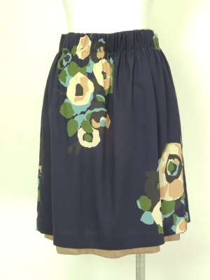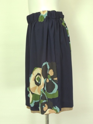レトロ風の大きな花柄が印象的なギャザースカート。