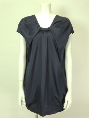 胸元のデザインがリボンみたいなチュニックブラウス。