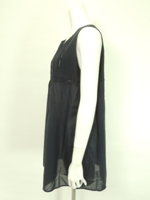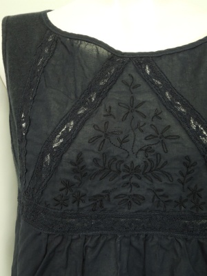 胸元のレースや刺繍でアンティークな雰囲気に仕上げたコットンワンピース。